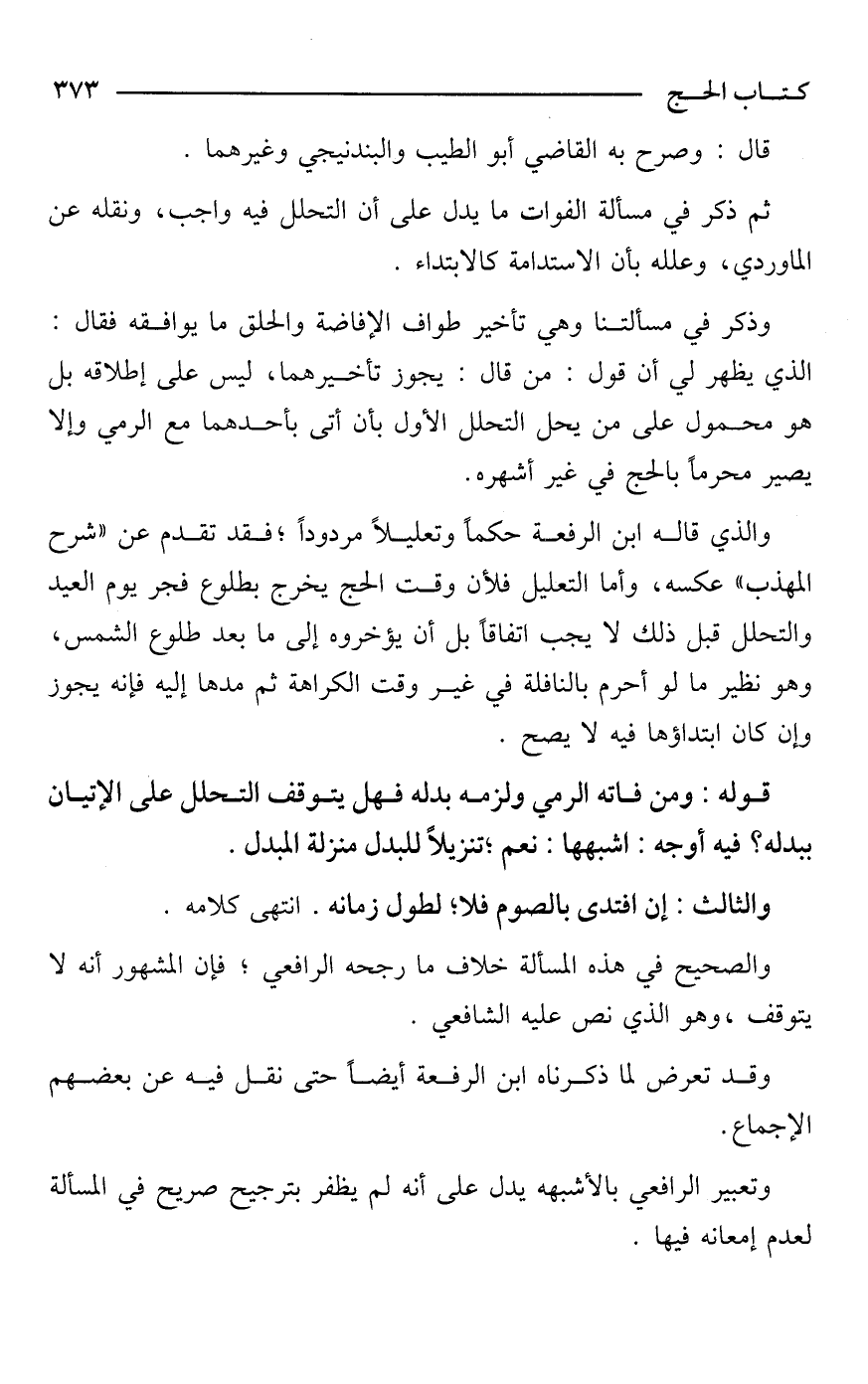 والذي قاله ابن الرفعة حكمًا وتعليلًا مردودًا؛ فقد تقدم عن "شرح المهذب" عكسه، وأما التعليل فلأن وقت الحج يخرج بطلوع فجر يوم العيد والتحلل قبل ذلك لا يجب اتفاقًا بل أن يؤخروه إلى ما بعد طلوع الشمس، وهو نظير ما لو أحرم بالنافلة في غير وقت الكراهة ثم مدها إليه فإنه يجوز وإن كان ابتداؤها فيه لا يصح.