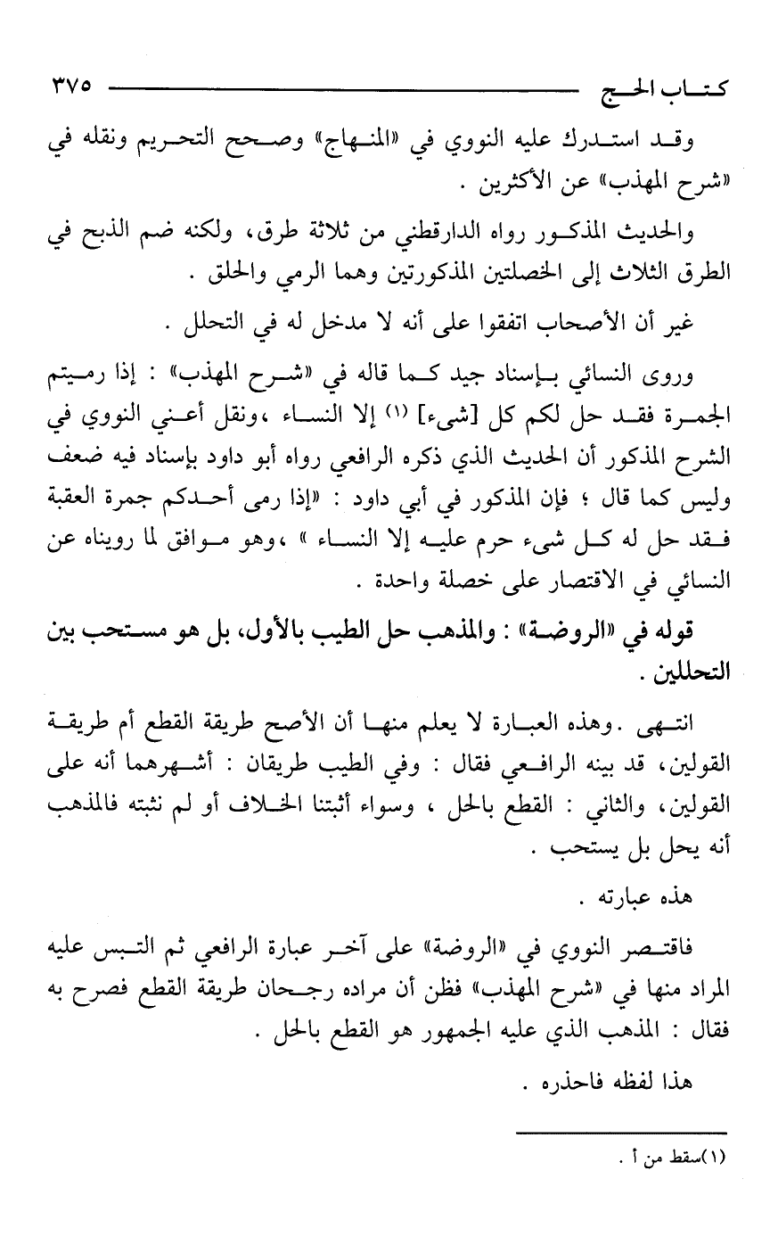 فاقتصر النووي في "الروضة" على آخر عبارة الرافعي ثم التبس عليه المراد منها في "شرح المهذب" فظن أن مراده رجحان طريقة القطع فصرح به فقال: المذهب الذي عليه الجمهور هو القطع بالحل.