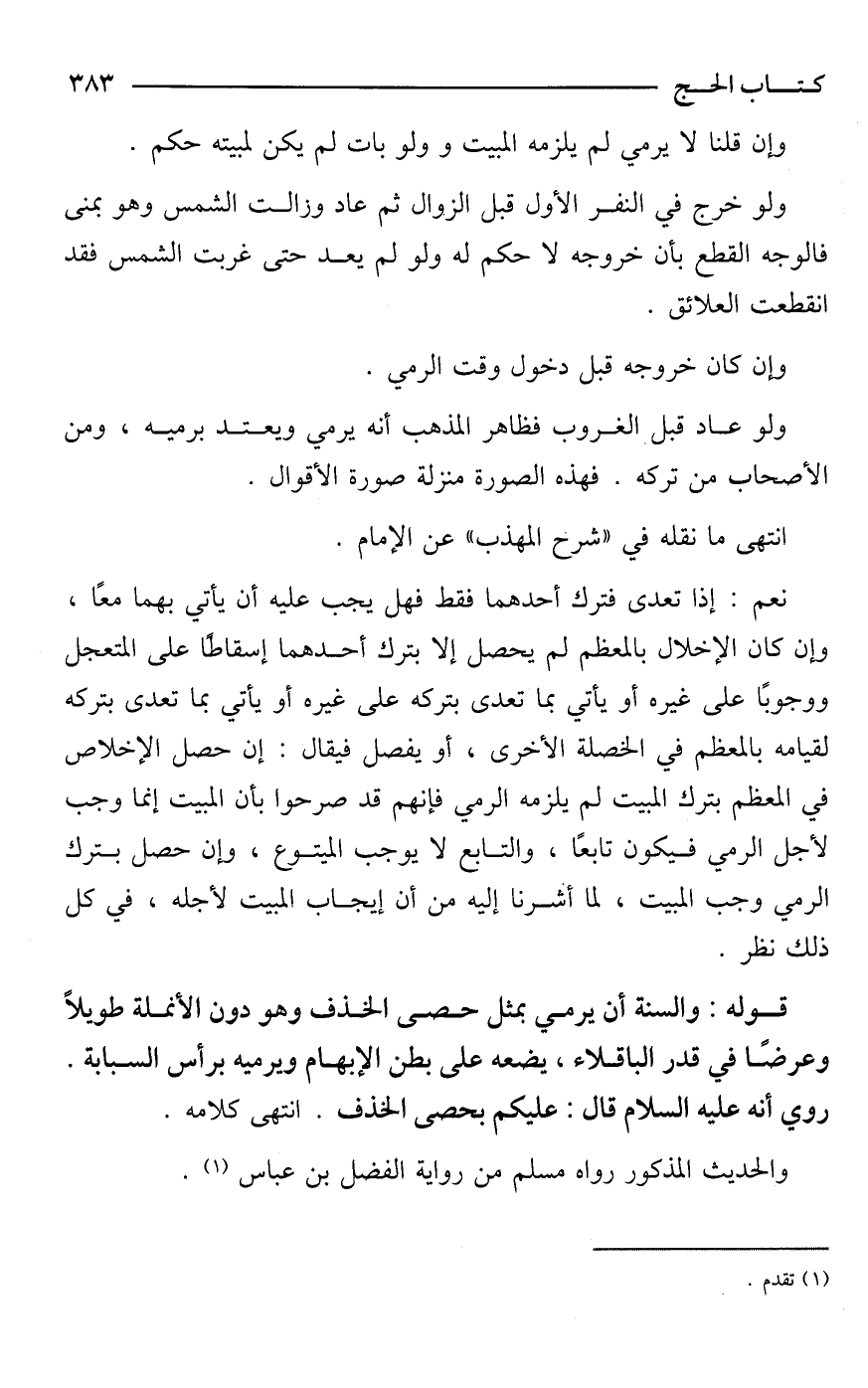 والحديث المذكور رواه مسلم من رواية الفضل بن عباس (¬1).