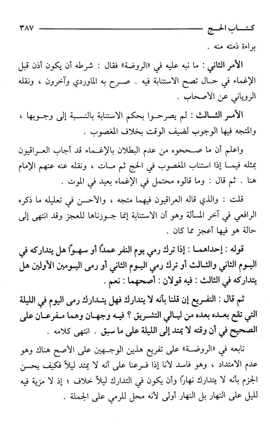 الأمر الثاني: ما نبه عليه في "الروضة" فقال: شرطه أن يكون أذن قبل الإغماء في حال تصح الاستنابة فيه. صرح به الماوردي وآخرون، ونقله الروياني عن الأصحاب.