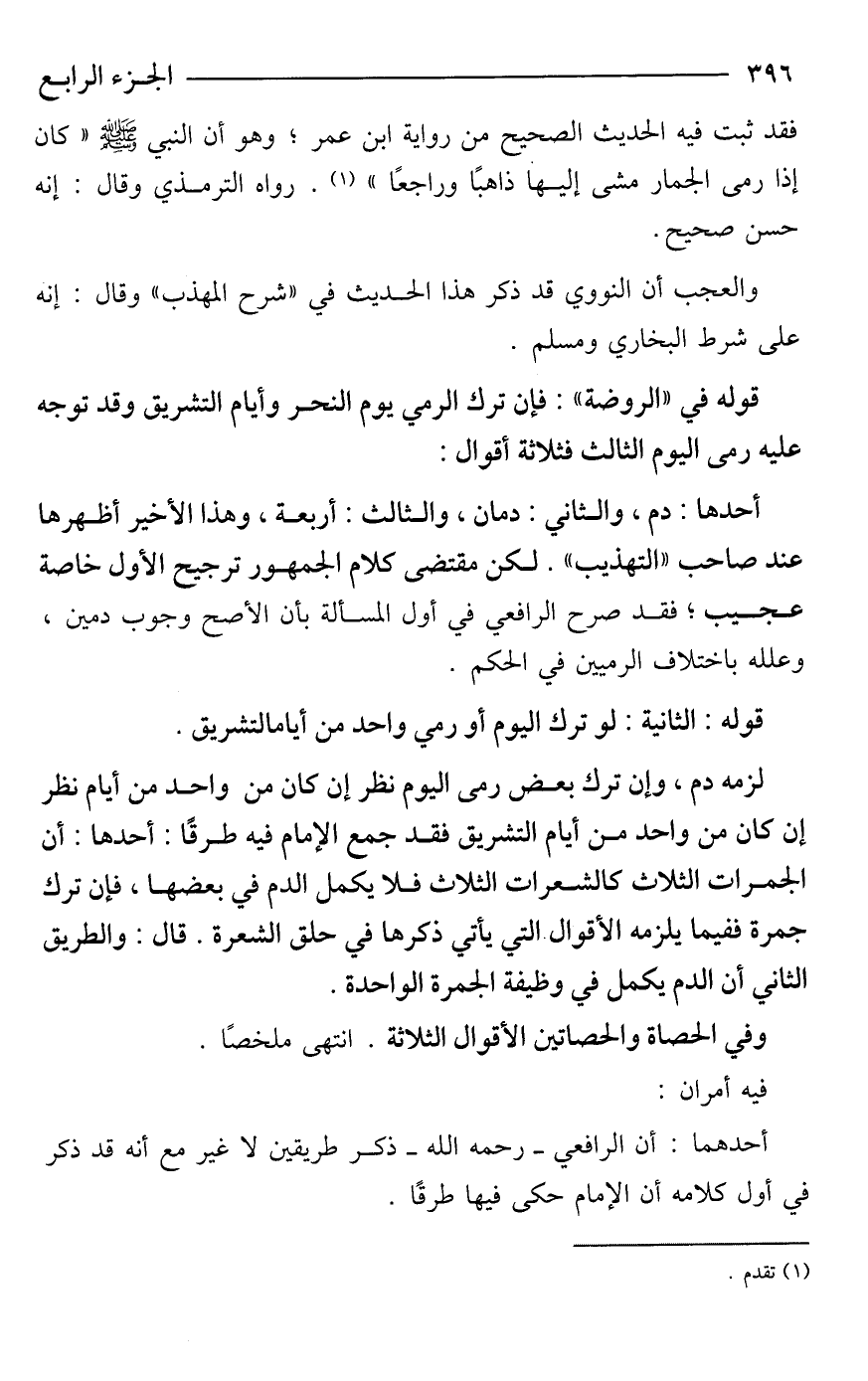فقد ثبت فيه الحديث الصحيح من رواية ابن عمر؛ وهو أن النبي - صَلَّى اللَّهُ عَلَيْهِ وَسَلَّمَ - "كان إذا رمى الجمار مشى إليها ذاهبًا وراجعًا" (¬1). رواه الترمذي وقال: إنه حسن صحيح.