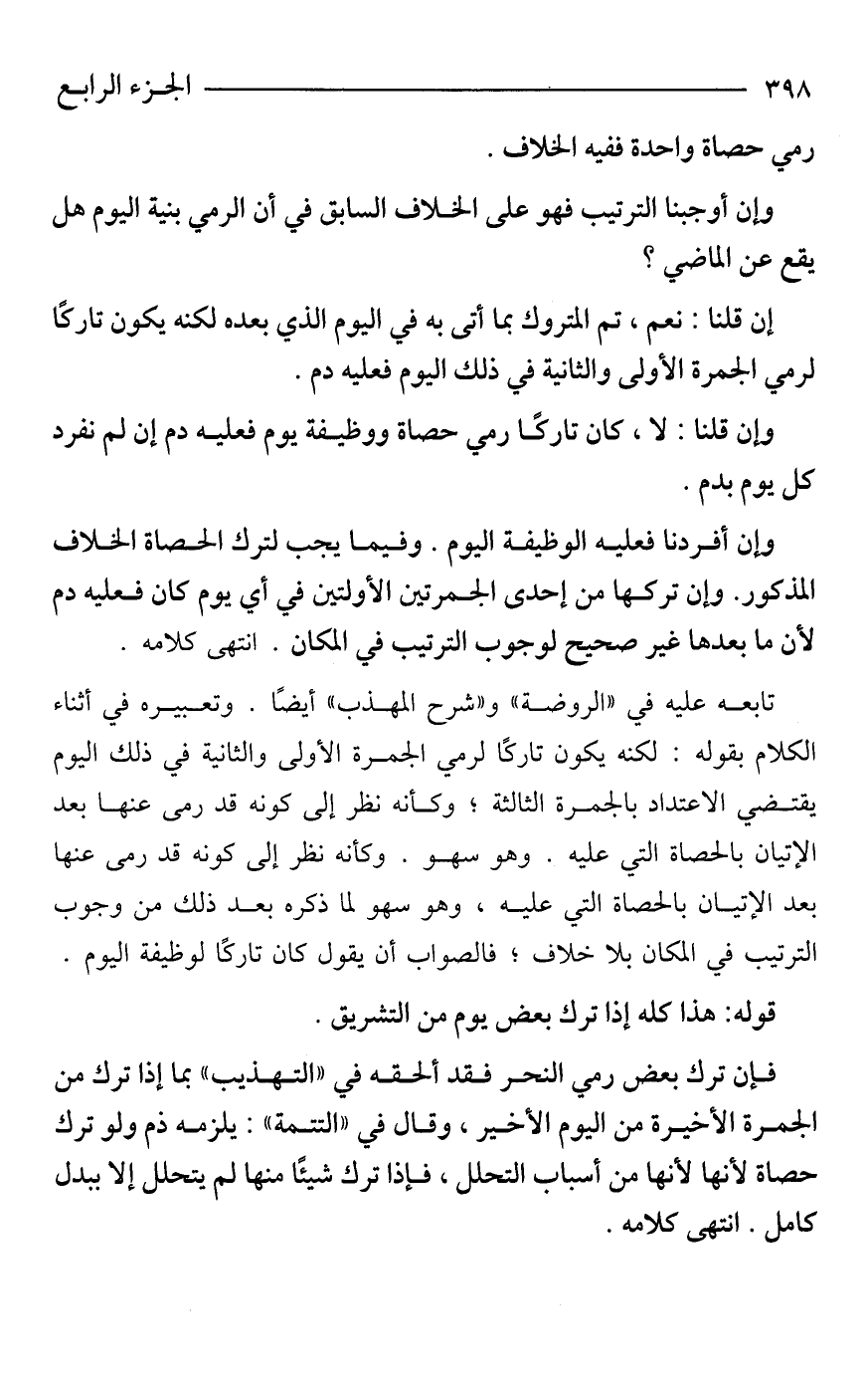 تابعه عليه في "الروضة" و"شرح المهذب" أيضًا. وتعبيره في أثناء الكلام بقوله: لكنه يكون تاركًا لرمي الجمرة الأولى والثانية في ذلك اليوم يقتضي الاعتداد بالجمرة الثالثة؛ وكأنه نظر إلى كونه قد رمى عنها بعد الإتيان بالحصاة التي عليه. وهو سهو. وكأنه نظر إلى كونه قد رمى عنها بعد الإتيان بالحصاة التي عليه، وهو سهو لما ذكره بعد ذلك من وجوب الترتيب في المكان بلا خلاف؛ فالصواب أن يقول كان تاركًا لوظيفة اليوم.