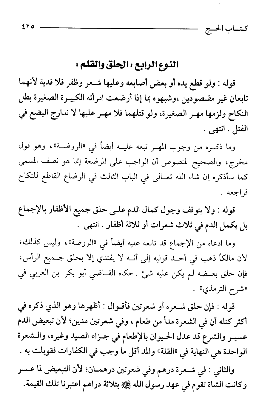 قوله: ولا يتوقف وجول كمال الدم على حلق جميع الأظفار بالإجماع بل يكمل الدم في ثلاث شعرات أو ثلاثة أظفار. انتهى.