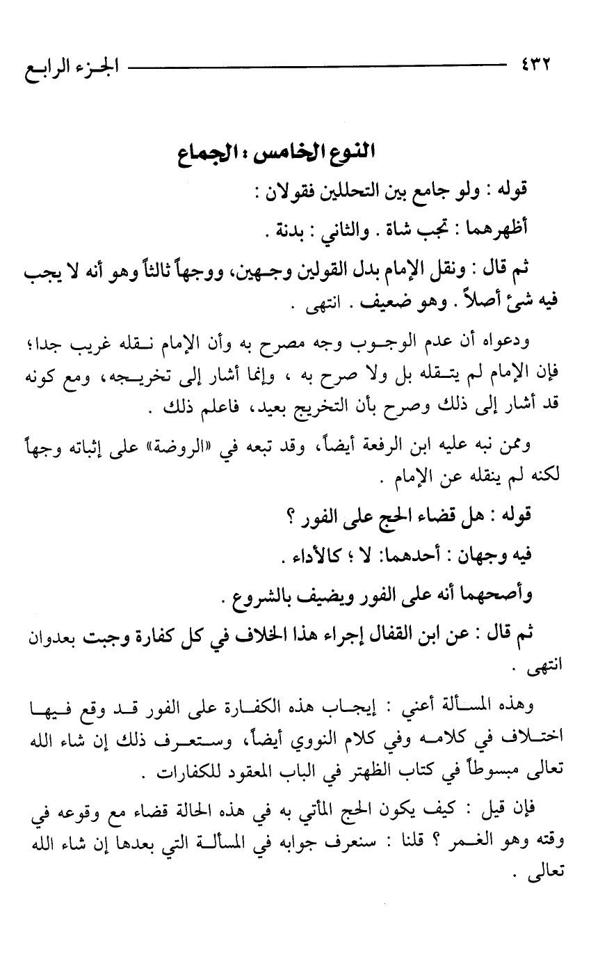 ودعواه أن عدم الوجوب وجه مصرح به وأن الإمام نقله غريب جدا؛ فإن الإمام لم ينقله بل ولا صرح به، وإنما أشار إلى تخريجه، ومع كونه قد أشار إلى ذلك وصرح بأن التخريج بعيد، فاعلم ذلك.