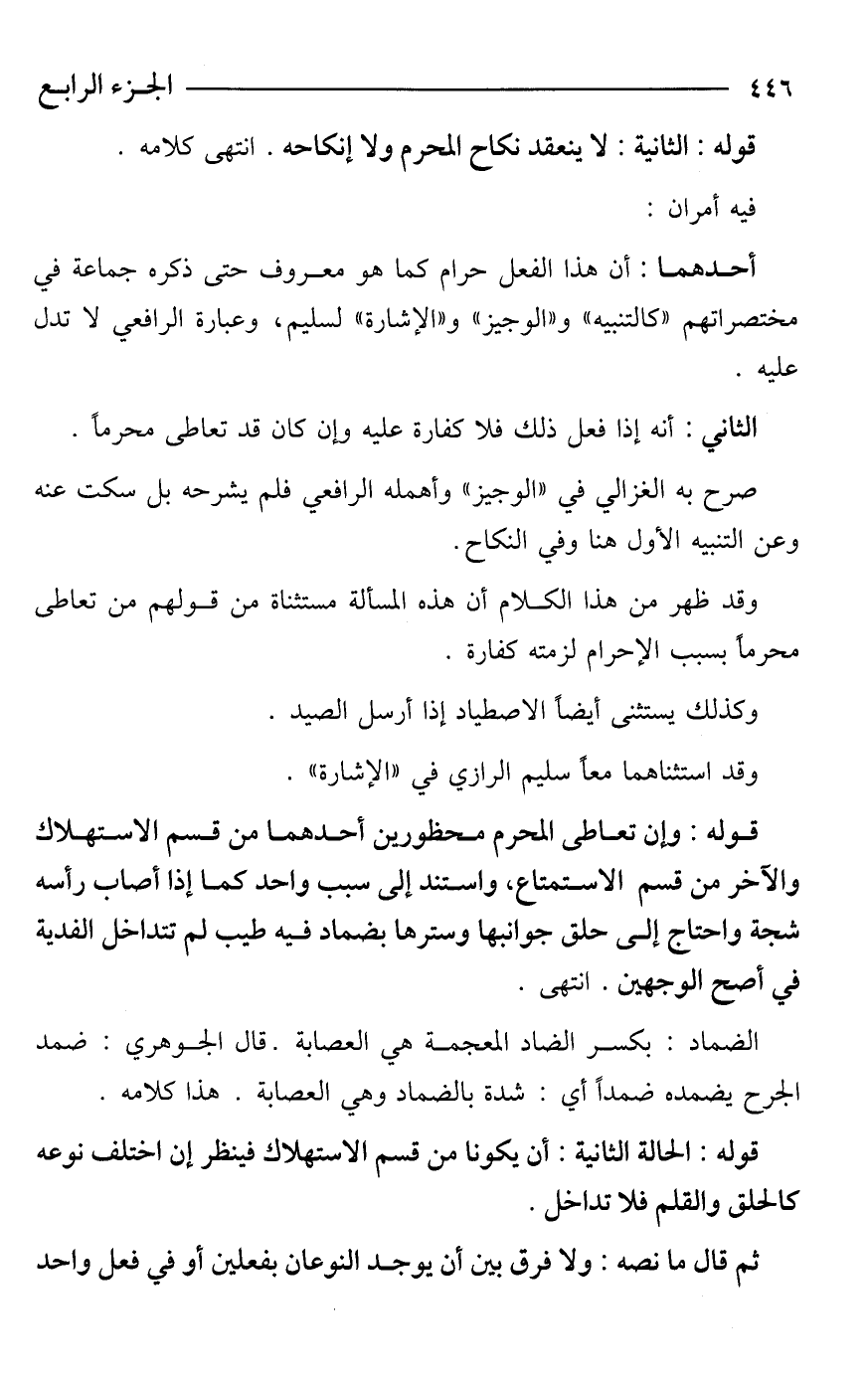 أحدهما: أن هذا الفعل حرام كما هو معروف حتى ذكره جماعة في مختصراتهم "كالتنبيه" و"الوجيز" و"الإشارة" لسليم، وعبارة الرافعي لا تدل عليه.