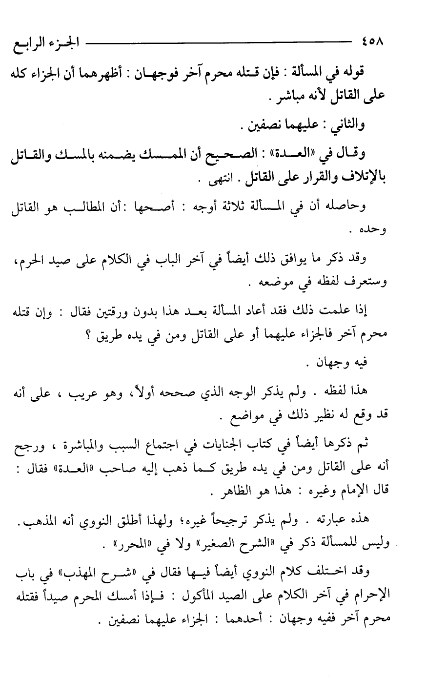 إذا علمت ذلك فقد أعاد المسألة بعد هذا بدون ورقتين فقال: وإن قتله محرم آخر فالجزاء عليهما أو على القاتل ومن في يده طريق؟