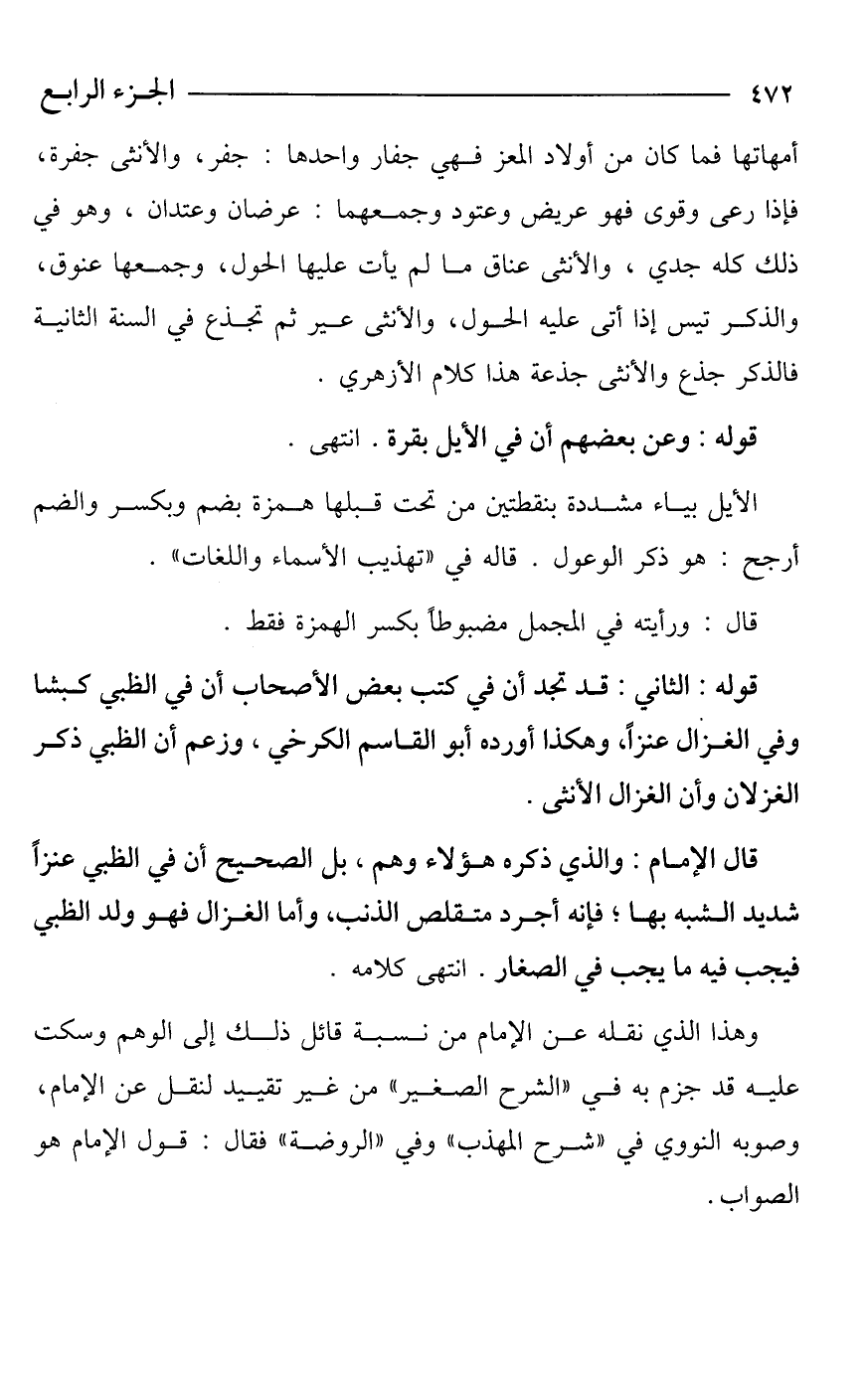 قال الإمام: والذي ذكره هؤلاء وهم، بل الصحيح أن في الظبي عنزًا شديد الشبه بها؛ فإنه أجرد متقلص الذنب، وأما الغزال فهو ولد الظبي فيجب فيه ما يجب في الصغار. انتهى كلامه.