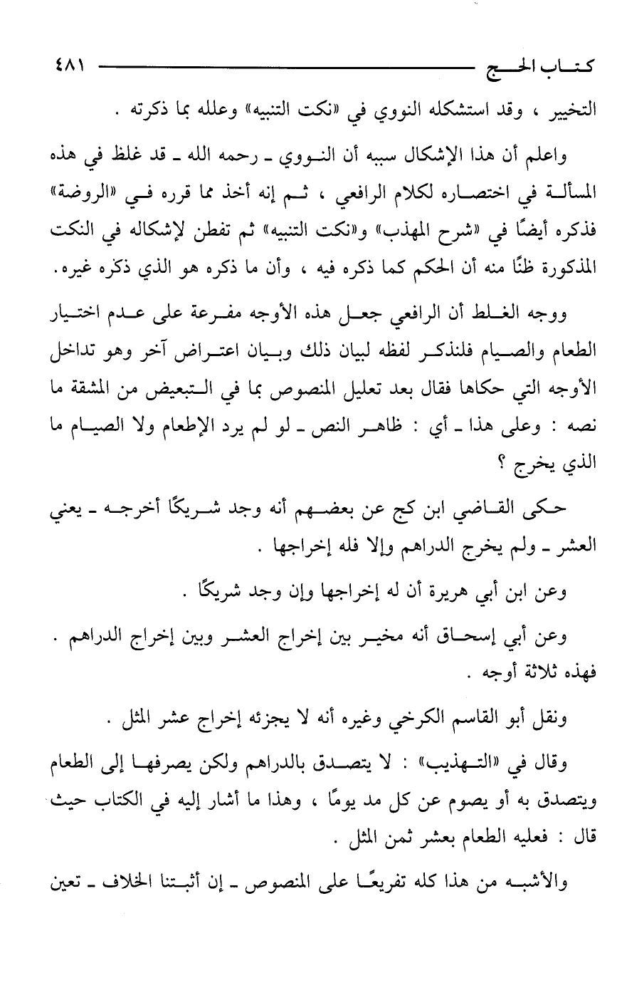 ووجه الغلط أن الرافعي جعل هذه الأوجه مفرعة على عدم اختيار الطعام والصيام فلنذكر لفظه لبيان ذلك وبيان اعتراض آخر وهو تداخل الأوجه التي حكاها فقال بعد تعليل المنصوص بما في التبعيض من المشقة ما نصه: وعلى هذا -أي: ظاهر النص- لو لم يرد الإطعام ولا الصيام ما الذي يخرج؟