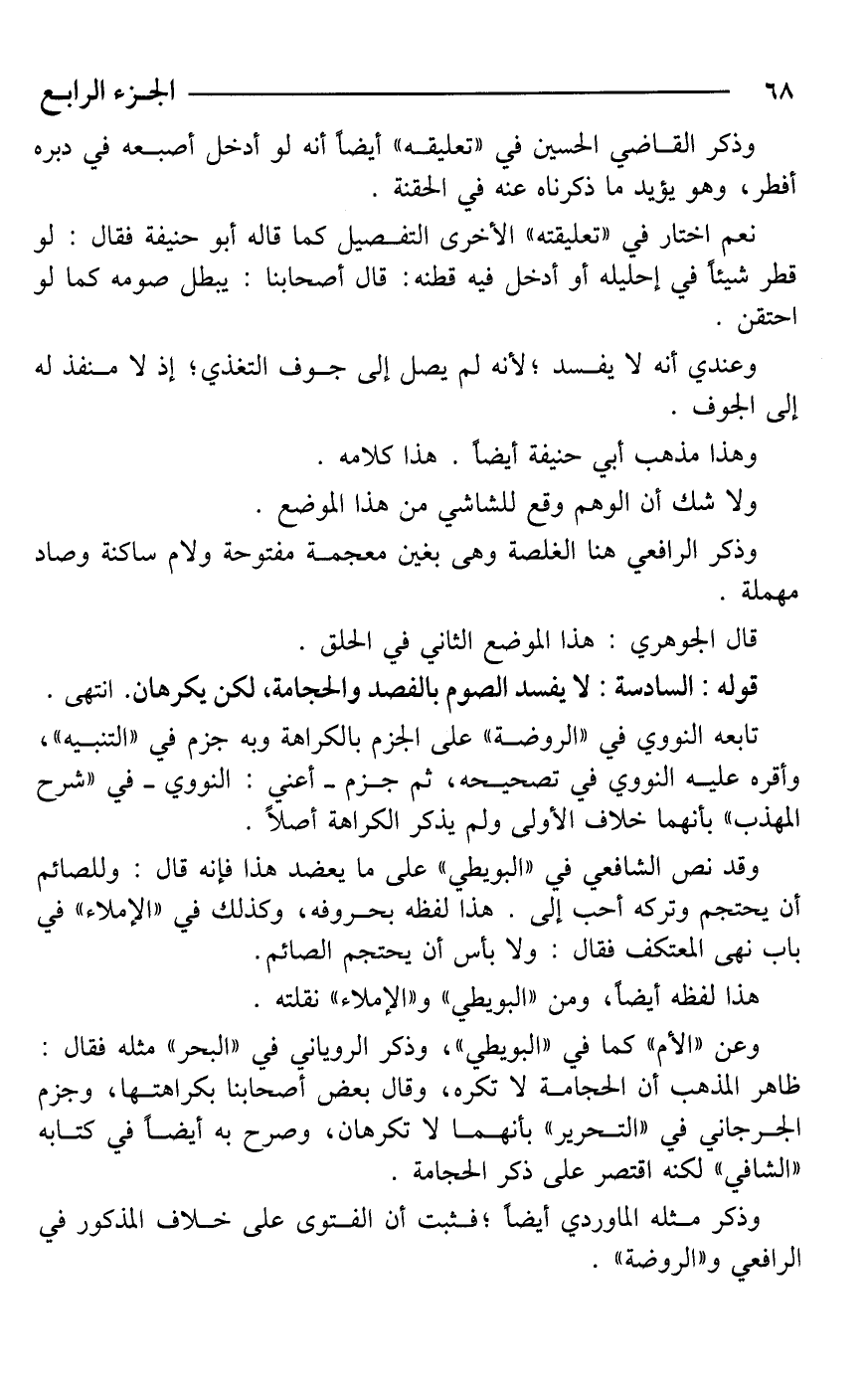 وقد نص الشافعي في "البويطي" على ما يعضد هذا فإنه قال: وللصائم أن يحتجم وتركه أحب إلى. هذا لفظه بحروفه، وكذلك في "الإملاء" في باب نهى المعتكف فقال: ولا بأس أن يحتجم الصائم.