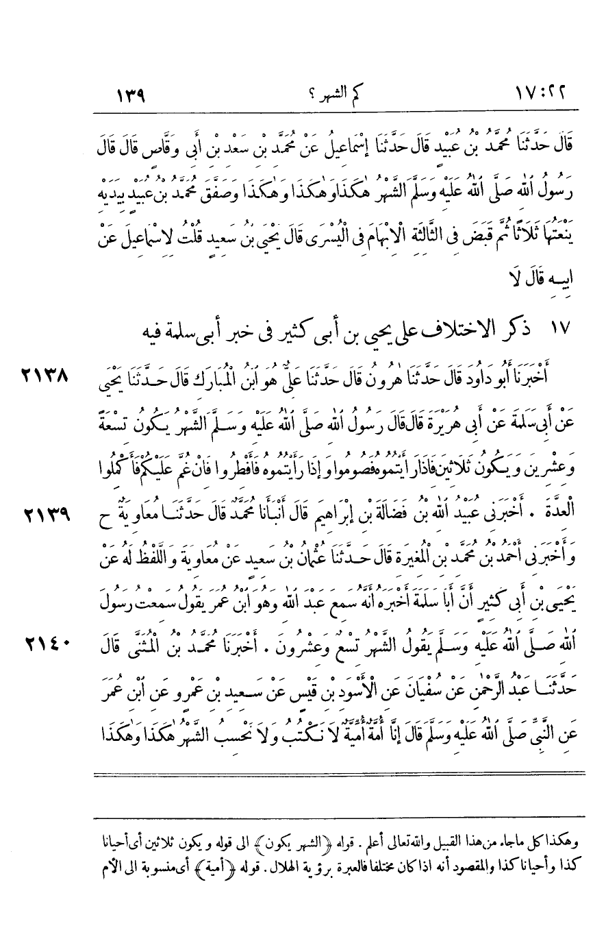 [2138] الشَّهْر يكون إِلَى قَوْله وَيكون ثَلَاثِينَ أَي أَحْيَانًا كَذَا وَأَحْيَانا كَذَا وَالْمَقْصُود أَنه إِذا كَانَ مُخْتَلفا فَالْعِبْرَة بِرُؤْيَة الْهلَال قَوْله أُميَّة أَي منسوبة إِلَى الْأُم
