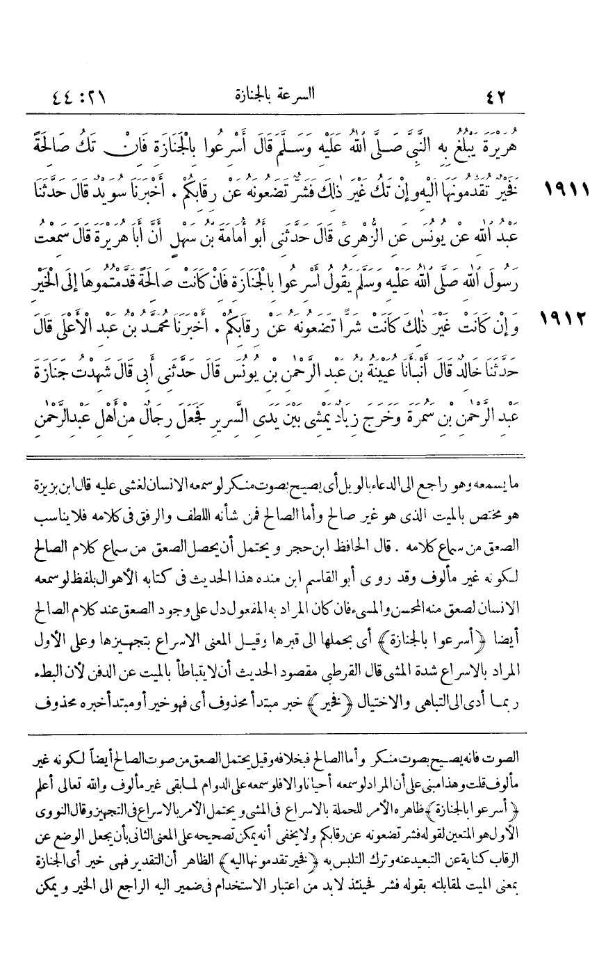 [1910] أَسْرِعُوا بِالْجِنَازَة أَيْ بِحَمْلِهَا إِلَى قَبْرِهَا وَقِيلَ الْمَعْنَى الْإِسْرَاعُ بِتَجْهِيزِهَا وَعَلَى الْأَوَّلِ الْمُرَادُ بِالْإِسْرَاعِ شِدَّةُ الْمَشْي قَالَ الْقُرْطُبِيُّ مَقْصُودُ الْحَدِيثِ أَنْ لَا يُتَبَاطَأَ بِالْمَيِّتِ عَنِ الدَّفْنِ لِأَنَّ الْبُطْءَ رُبَّمَا أَدَّى إِلَى التَّبَاهِي وَالِاخْتِيَالِ فَخَيْرٌ خَبَرُ مُبْتَدَأٍ مَحْذُوفٍ أَيْ فَهُوَ خَيْرٌ أَوْ مُبْتَدَأٌ خَبَرُهُ مَحْذُوفٌ أَيْ فَلَهَا خَيْرٌ أَوْ فَهُنَاكَ خَيْرٌ