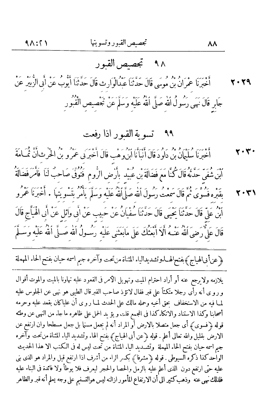 [2031] عَنْ أَبِي الْهَيَّاجِ بِفَتْحِ الْهَاءِ وَتَشْدِيدِ الْيَاءِ الْمُثَنَّاةِ مِنْ تَحْتِ وَآخِرُهُ جِيمٌ اسْمُهُ حَيَّانُ بِفَتْحِ الْحَاءِ الْمُهْمَلَةِ وَتَشْدِيدِ الْمُثَنَّاةِ مِنْ تَحْتِ وَآخره نون بن حَسَنٍ الْأَسَدِيُّ الْكُوفِيُّ لَيْسَ لَهُ فِي الْكُتُبِ إِلَّا هَذَا الحَدِيث الْوَاحِد