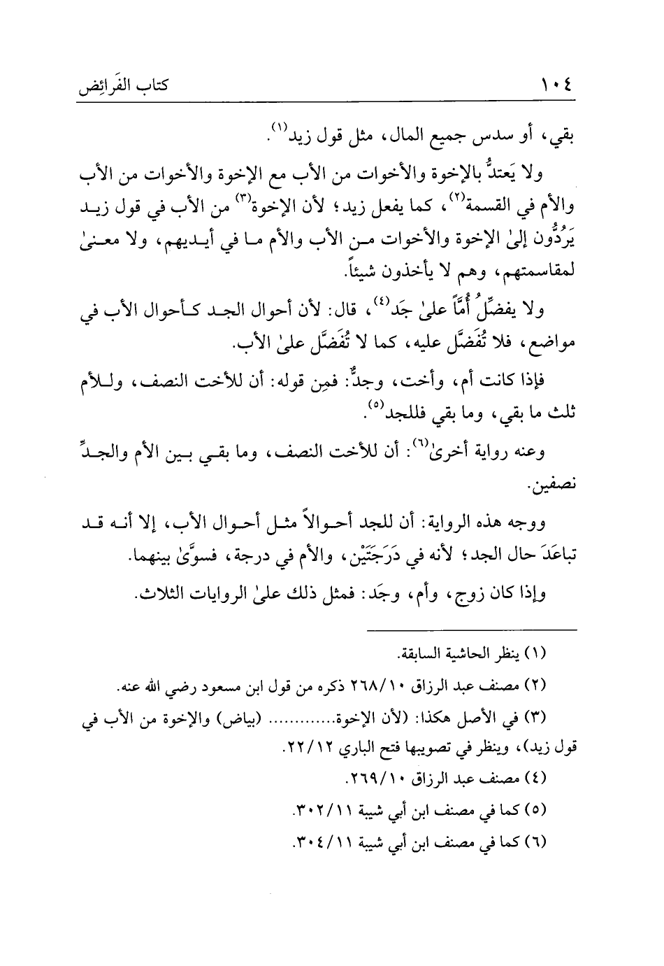 ولا يعتد بالإخوة والأخوات من الأب مع الإخوة والأخوات من الأب والأم في القسمة، كما يفعل زيد، لأن الإخوة من الأب في قول زيد يردون إلى الإخوة والأخوات من الأب والأم ما في أيديهم، ولا معنى لمقاسمتهم، وهم لا يأخذون شيئًا.