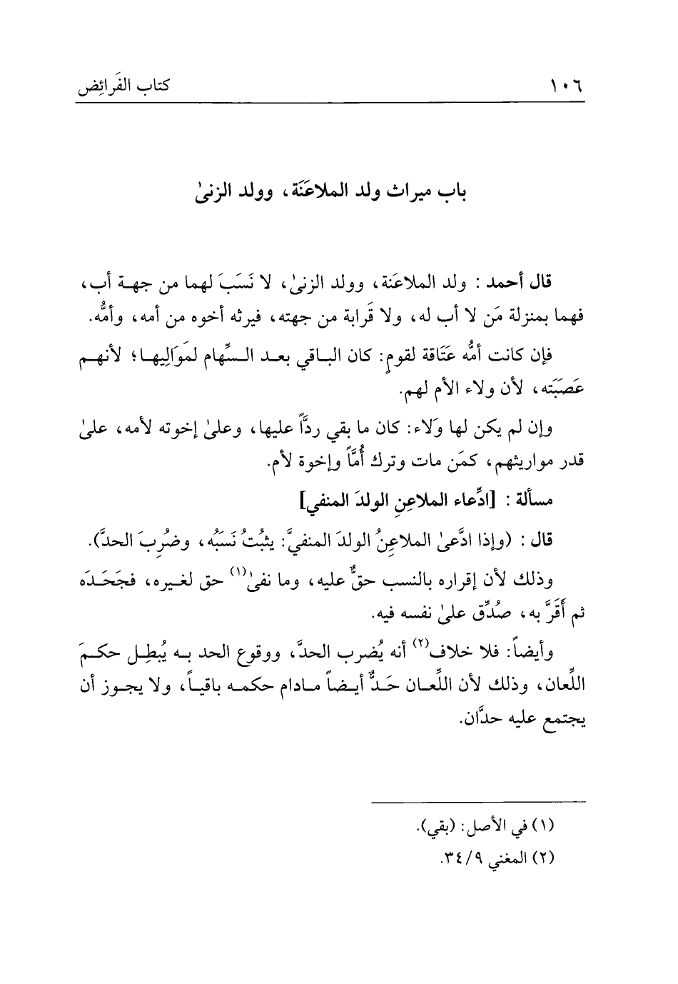 قال أحمد: ولد الملاعنة، وولد الزنى، لا نسب لهما من جهة أب، فهما بمنزلة من لا أب له، ولا قرابة من جهته، فيرثه أخوه من أمه، وأمه.