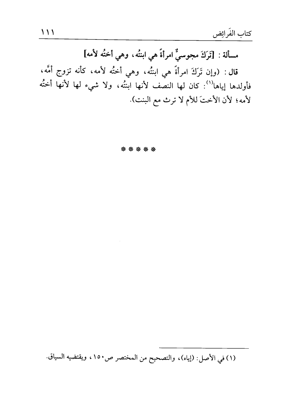 مسألة: [ترك مجوسي امرأة هي ابنته، وهي أخته لأمه]