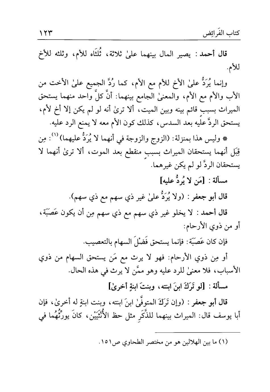 قال أبو جعفر: (ولا يرد على غير ذي سهم مع ذي سهم).