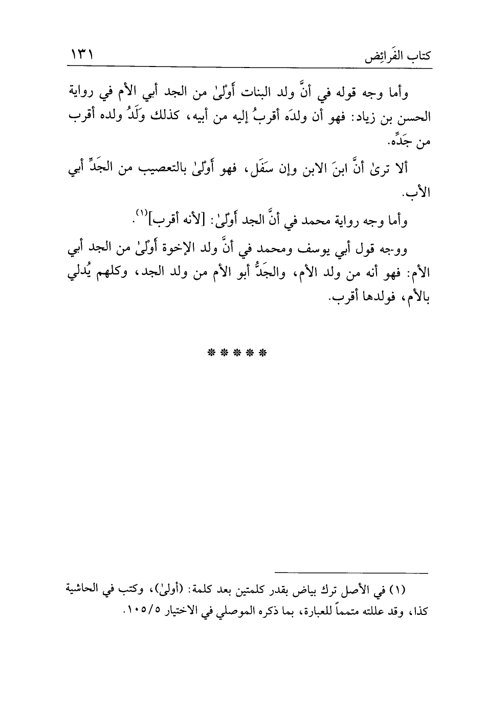 وأما وجه قوله في أن ولد البنات أولى من الجد أبي الأم في رواية الحسن بن زياد: فهو أن ولده أقرب إليه من أبيه، كذلك ولد ولده أقرب من جده.