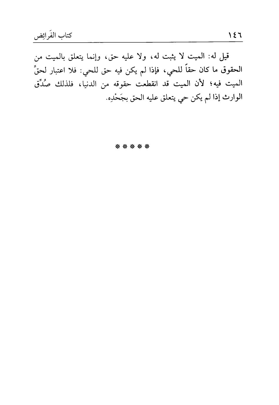 قيل له: الميت لا يثبت له، ولا عليه حق، وإنما يتعلق بالميت من الحقوق ما كان حقا للحي، فإذا لم يكن فيه حق للحي: فلا اعتبار لحق الميت فيه؛ لأن الميت قد انقطعت حقوقه من الدنيا، فلذبك صدق الوارث إذا لم يكن حي يتعلق عليه الحق بجحده.