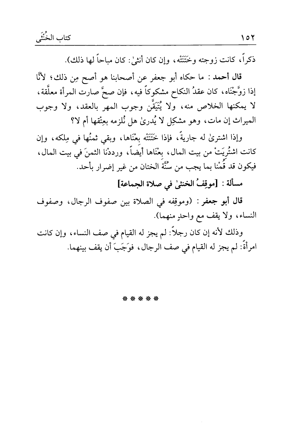 مسألة: [موقف الخنثى في صلاة الجماعة]