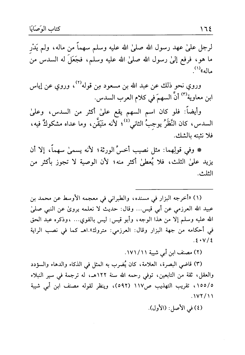 وروي نحو ذلك عن عبد الله بن مسعود من قوله، وروي عن إياس ابن معاوية أن السهم في كلام العرب السدس.