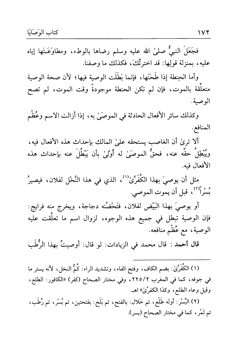 قال أحمد: قال محمد في الزيادات: لو قال: أوصيت بهذا الرطب