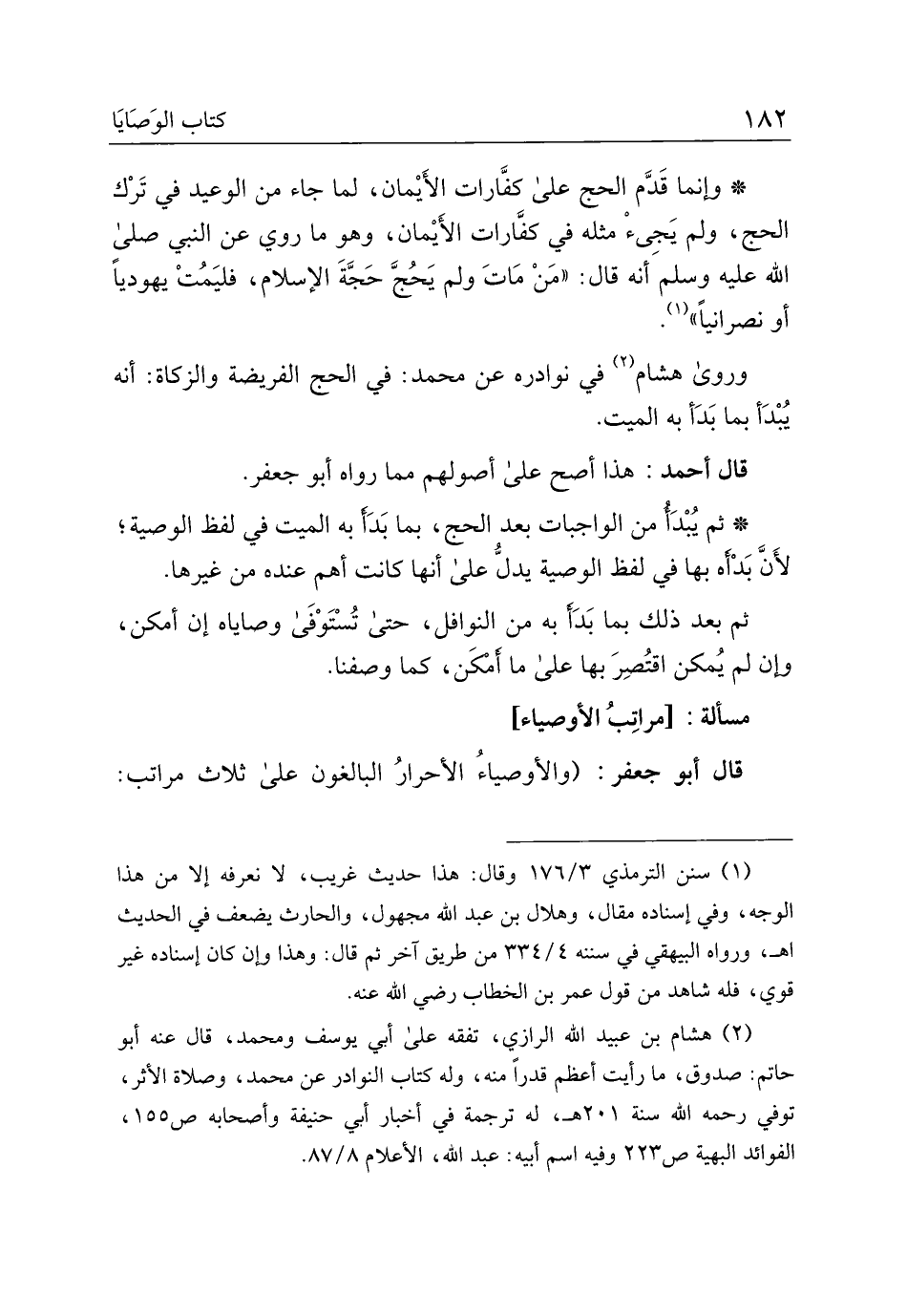 قال أبو جعفر: (والأوصياء الأحرار البالغون على ثلاث مراتب: