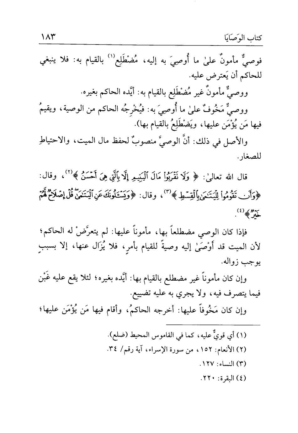 فإذا كان الوصي مضطلعًا بها، مأمونًا عليها: لم يتعرض له الحاكم؛ لأن الميت قد أوصى إليه وصية للقيام بأمرٍ، فلا يزال عنها، إلا بسببٍ يوجب زواله.