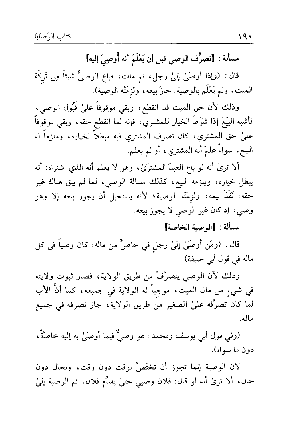 مسألة: [الوصية الخاصة]