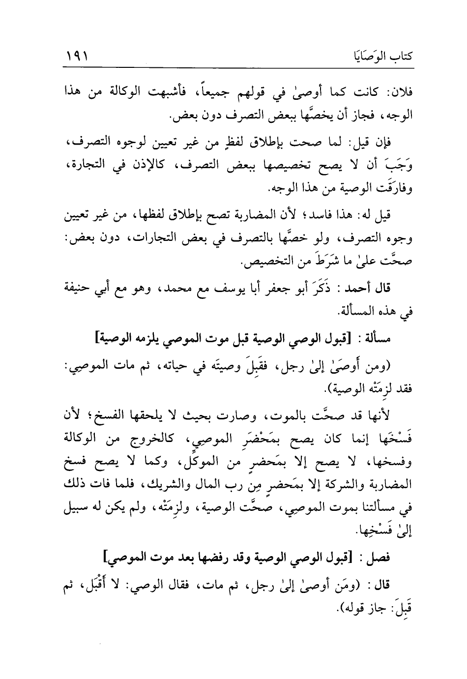 فلان: كانت كما أوصى في قولهم جميعًا، فأشبهت الوكالة من هذا الوجه، فجاز أن يخصها ببعض التصرف دون بعض.