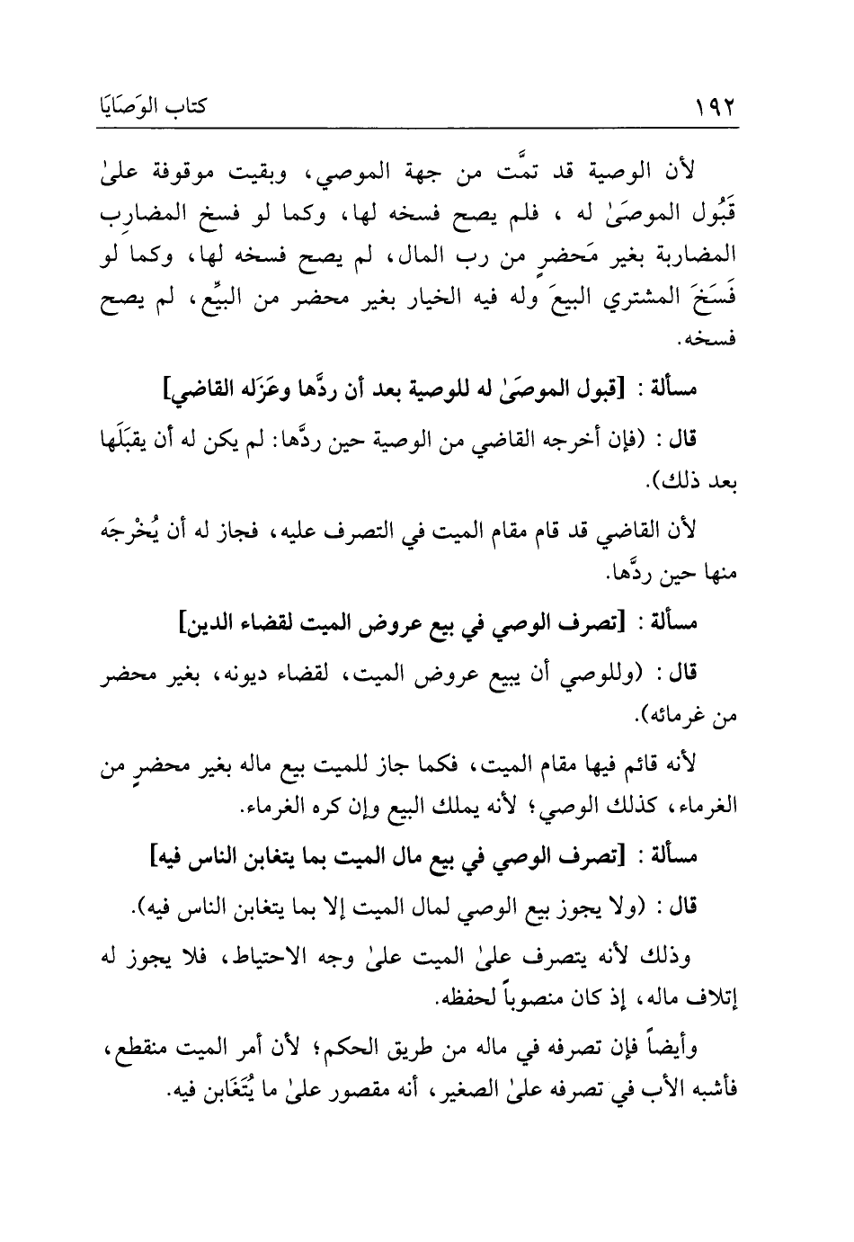 مسألة: [تصرف الوصي في بيع عروض الميت لقضاء الدين]