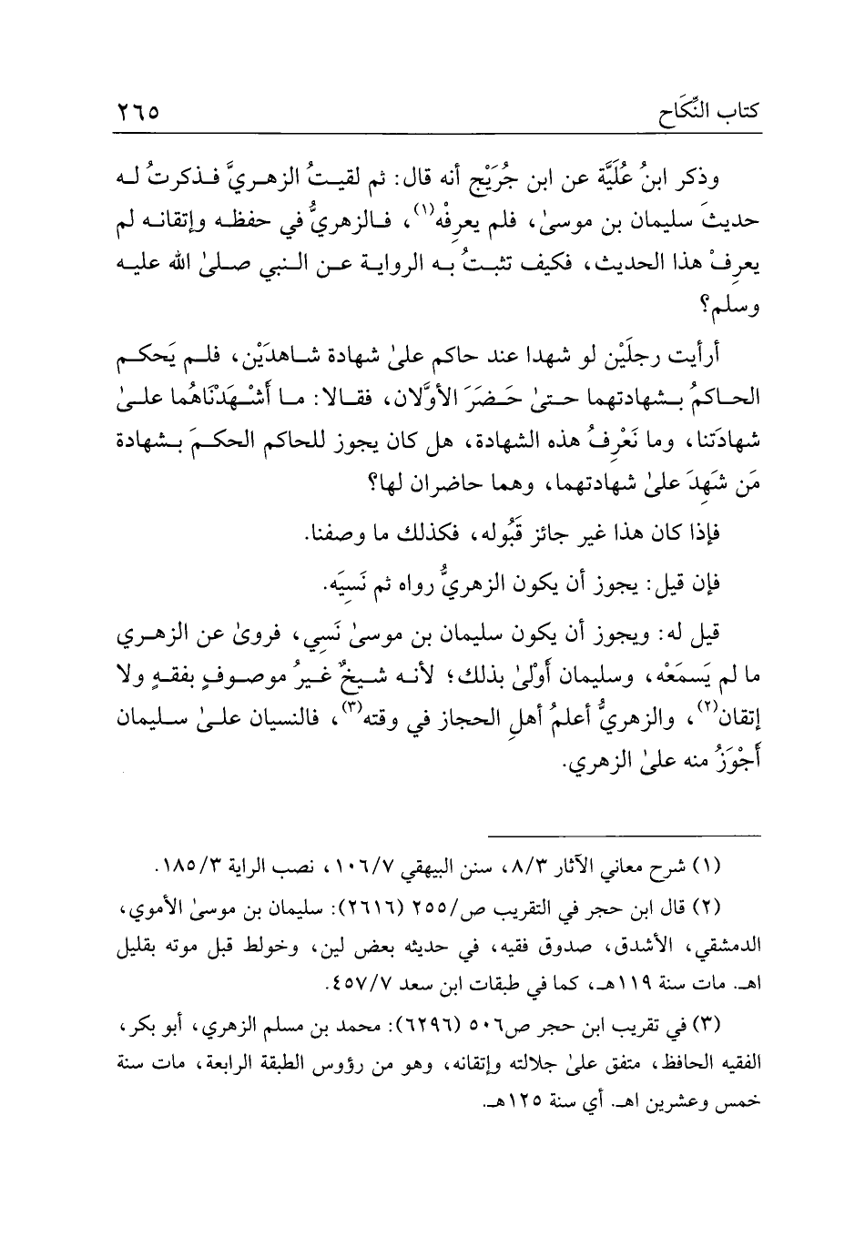 وذكر ابن علية عن ابن جريج أنه قال: ثم لقيت الزهري فذكرت له حديث سليمان بن موسى، فلم يعرفه، فالزهري في حفظه وإتقانه لم يعرف هذا الحديث، فكيف تثبت به الرواية عن النبي صلى الله عليه وسلم؟