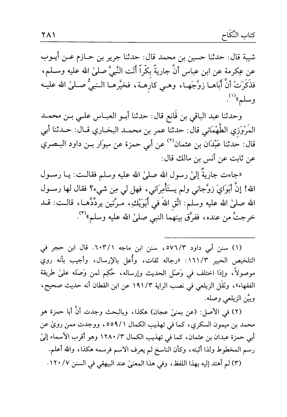 شيبة قال: حدثنا حسين بن محمد قال: حدثنا جرير بن حازم عن أيوب عن عكرمة عن ابن عباس أن جارية بكرًا أتت النبي صلى الله عليه وسلم، فذكرت أن أباها زوجها، وهي كارهة، فخيرها النبي صلى الله عليه وسلم".