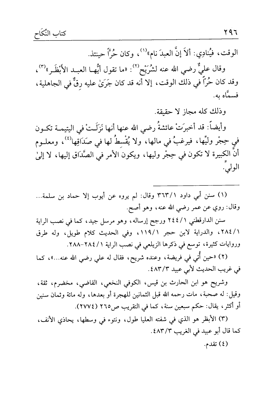 الوقت فينادي: ألا إن العبد نام"، وكان حرًا حينئذ.