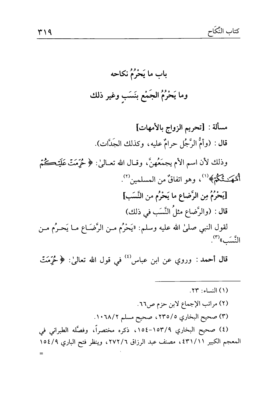 باب ما يحرم نكاحه وما يحرم الجمع بنسب وغير ذلك