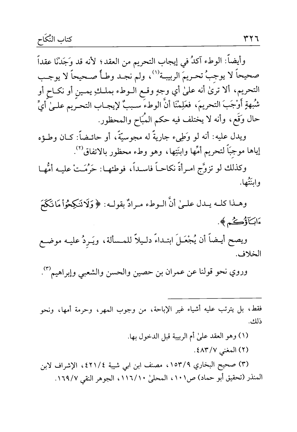 وأيضًا: الوطء أكد في إيجاب التحريم من العقد؛ لأنه قد وجدنا عقدًا صحيحًا لا يوجب تحريم الربيبة، ولم نجد وطأ صحيحًا لا يوجب التحريم، ألا ترى أنه على أي وجه وقع الوطء بملك يمين أو نكاح أو شبهة أوجب التحريم، فعلمنا أن الوطء سبب لإيجاب التحريم على أي حال وقع، وأنه لا يختلف فيه حكم المباح والمحظور.