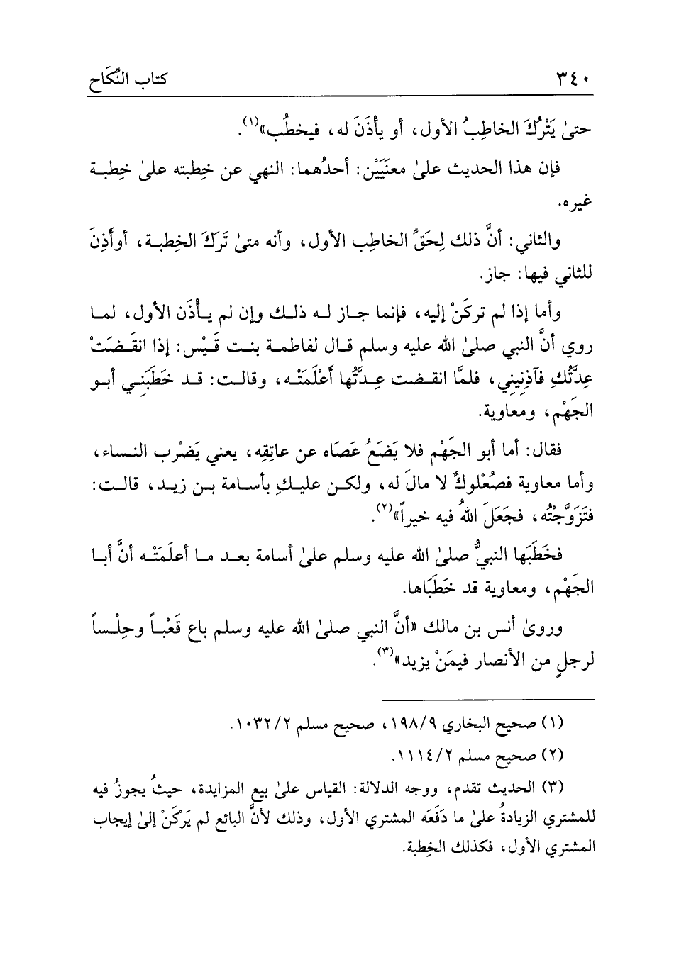 حتى يترك الخاطب الأول، أو يأذن له، فيخطب".