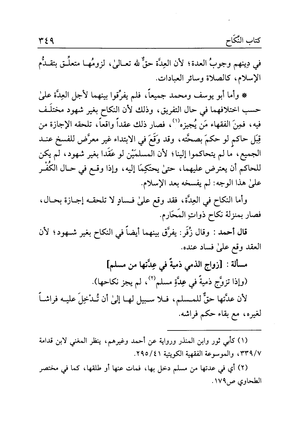 مسألة: [زواج الذمي ذمية في عدتها من مسلم]