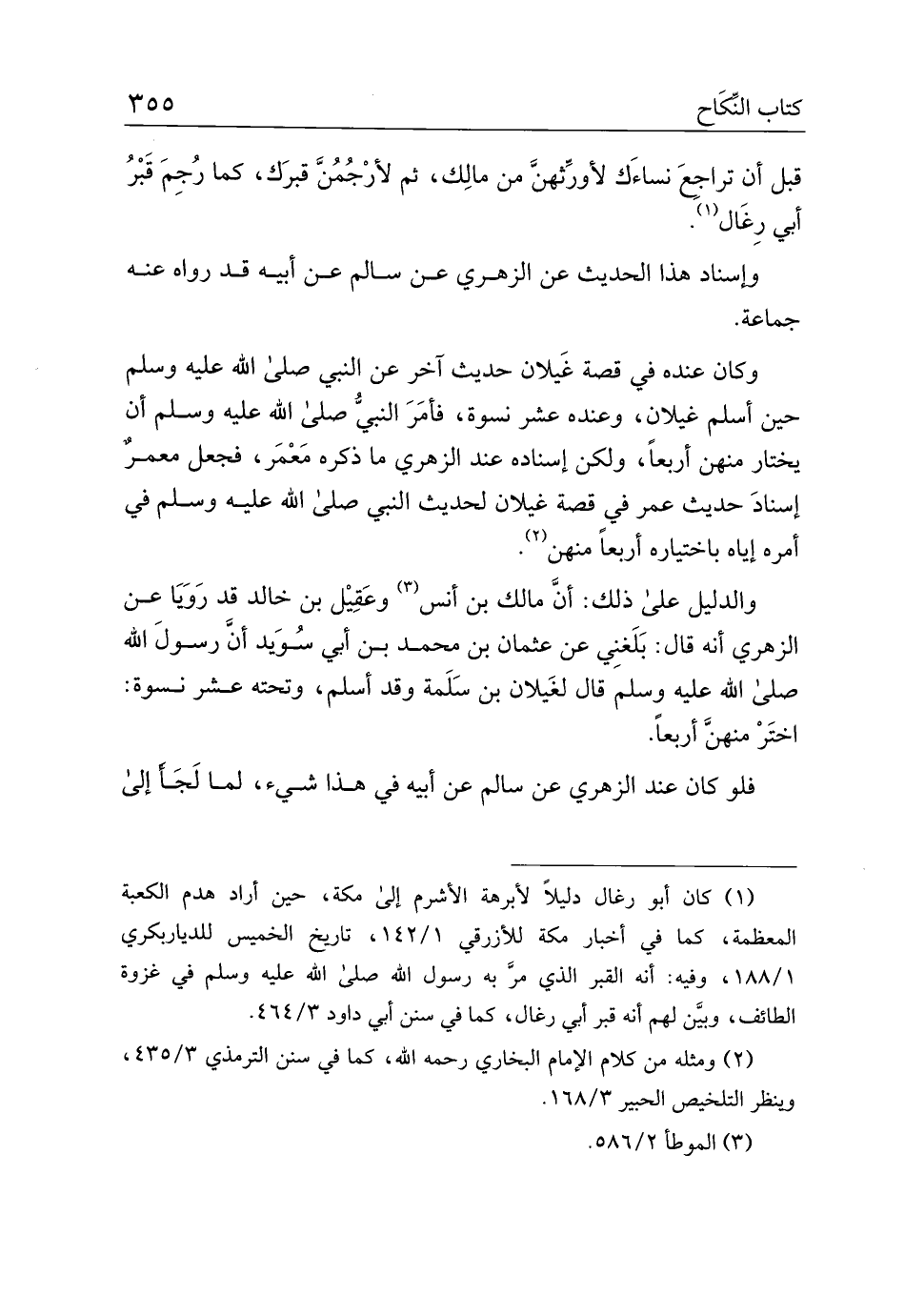 والدليل على ذلك: أن مالك بن أنس وعقيل بن خالد قد رويا عن الزهري أنه قال: بلغني عن عثمان بن محمد بن أبي سويد أن رسول الله صلى الله عليه وسلم قال لغيلان بن سلمة وقد أسلم، وتحته عشر نسوة: اختر منهن أربعا.