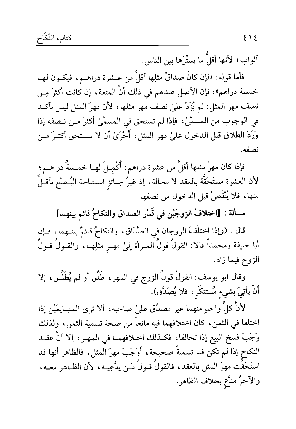 مسألة: [اختلاف الزوجين في قدر الصداق والنكاح قائم بينهما]