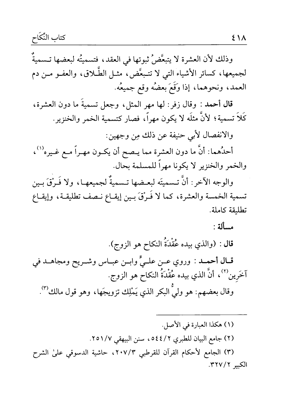 قال أحمد: وروي عن علي وابن عباس وشريح ومجاهد في آخرين، أن الذي بيده عقدة النكاح هو الزوج.