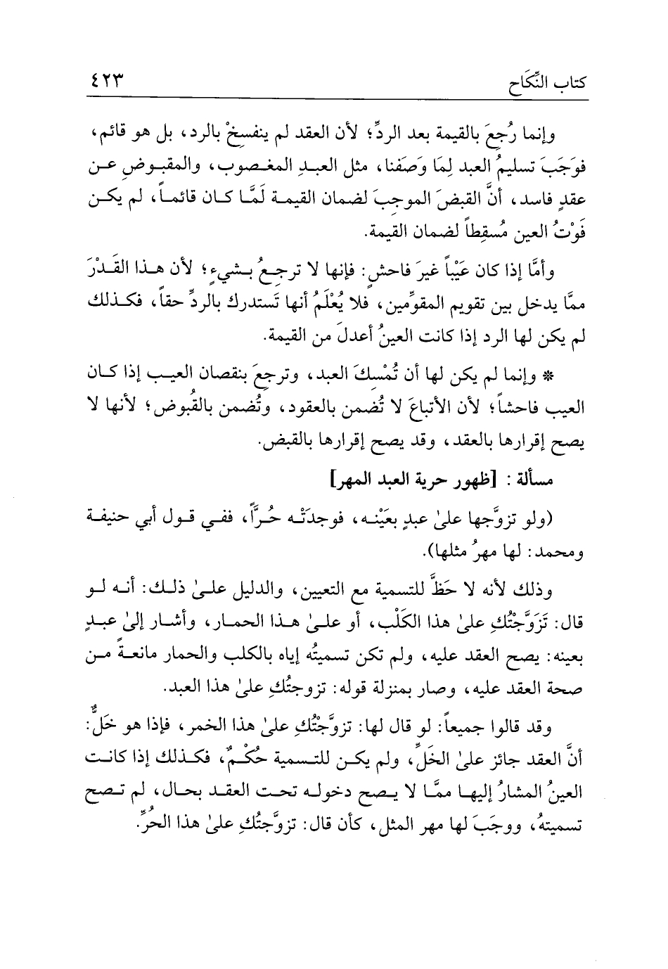 مسألة: [ظهور حرية العبد المهر]