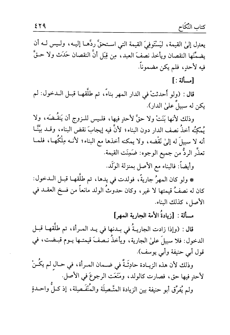 مسألة: [زيادة الأمة الجارية المهر]