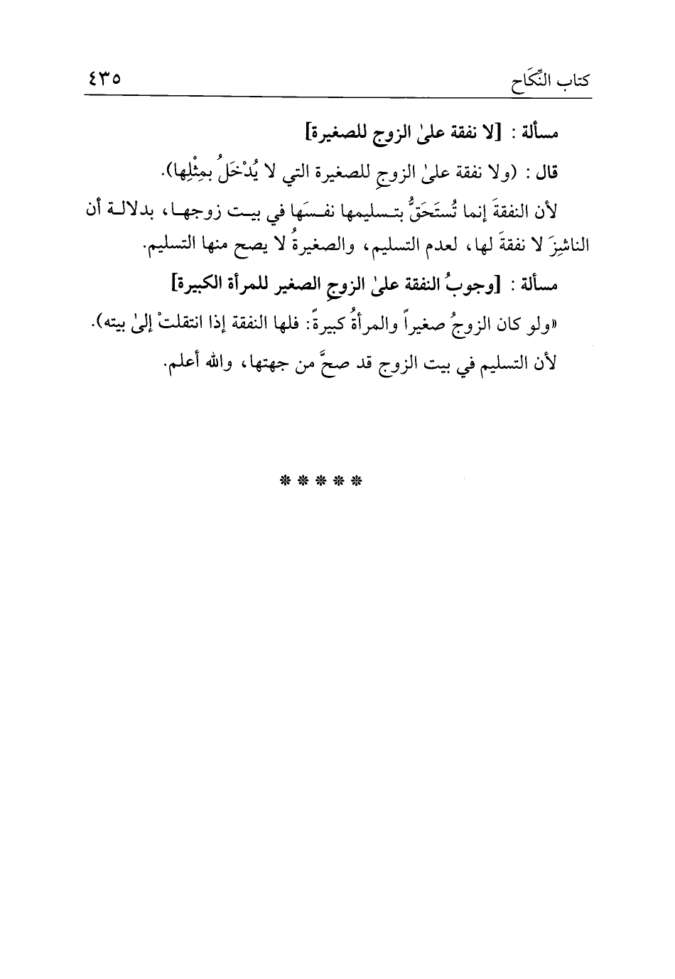 مسألة: [لا نفقة على الزوج للصغيرة]