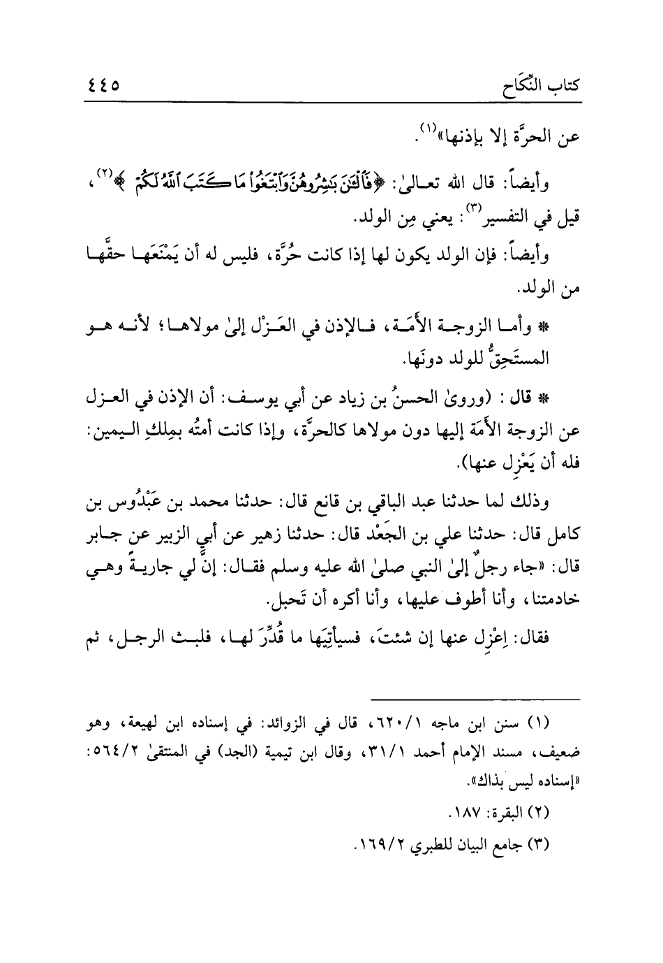 وذلك لما حدثنا عبد الباقي بن قانع قال: حدثنا محمد بن عبدوس بن كامل قال: حدثنا علي بن الجعد قال: حدثنا زهير عن أبي الزبير عن جابر قال: "جاء رجل إلى النبي صلى الله عليه وسلم فقال: إن لي جارية وهي خادمتنا، وأنا أطوف عليها، وأنا أكره أن تحبل.