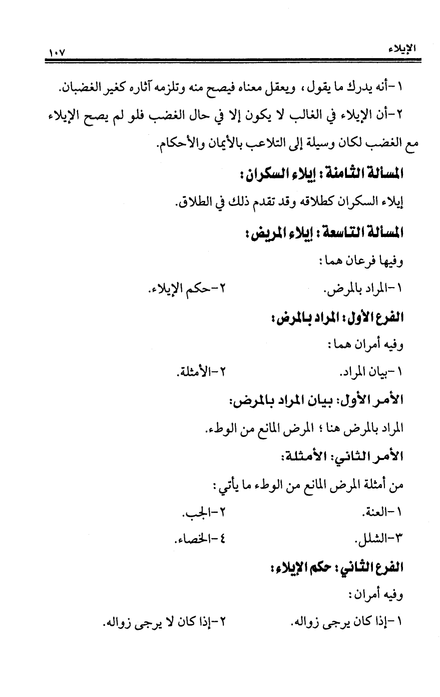 من أمثلة المرض المانع من الوطء ما يأتي: