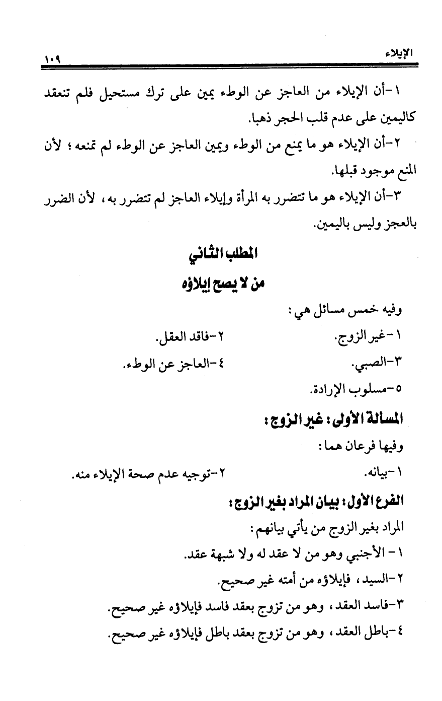 3 - أن الإيلاء هو ما تتضرر به المرأة وإيلاء العاجز لم تتضرر به؛ لأن الضرر بالعجز وليس باليمين.
