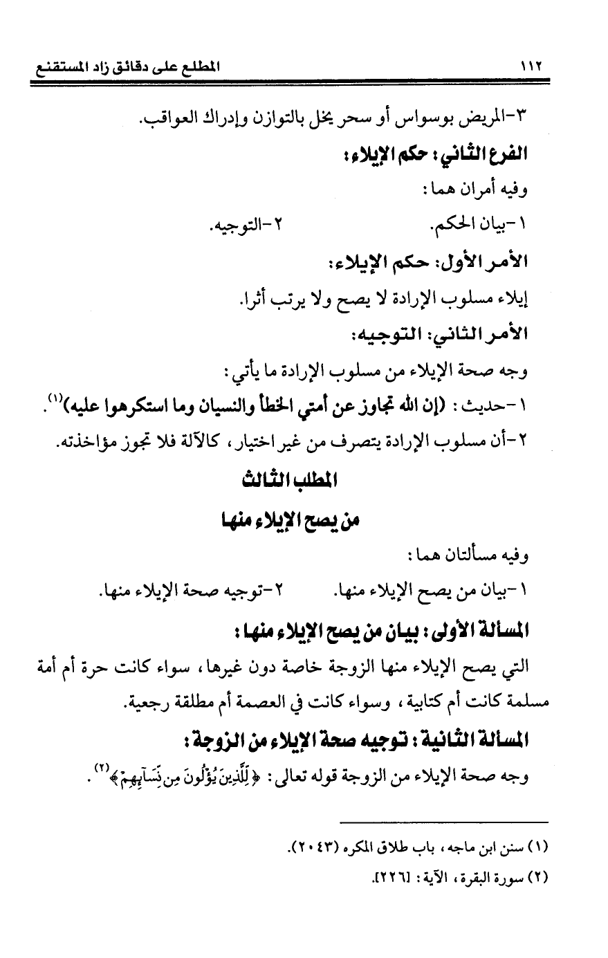المسألة الثانية: توجيه صحة الإيلاء من الزوجة: