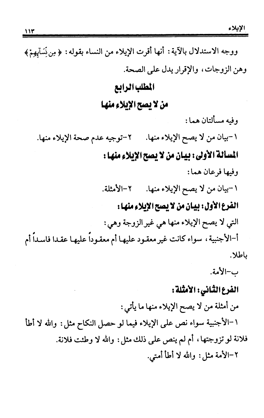 من أمثلة من لا يصح الإيلاء منها ما يأتي: