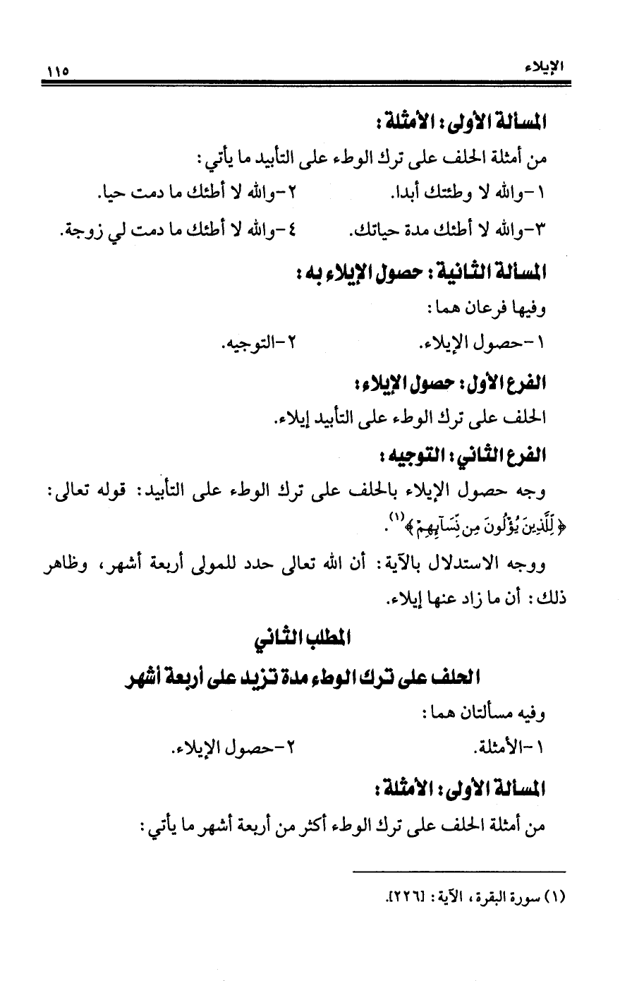 من أمثلة الحلف على ترك الوطء أكثر من أربعة أشهر ما يأتي: