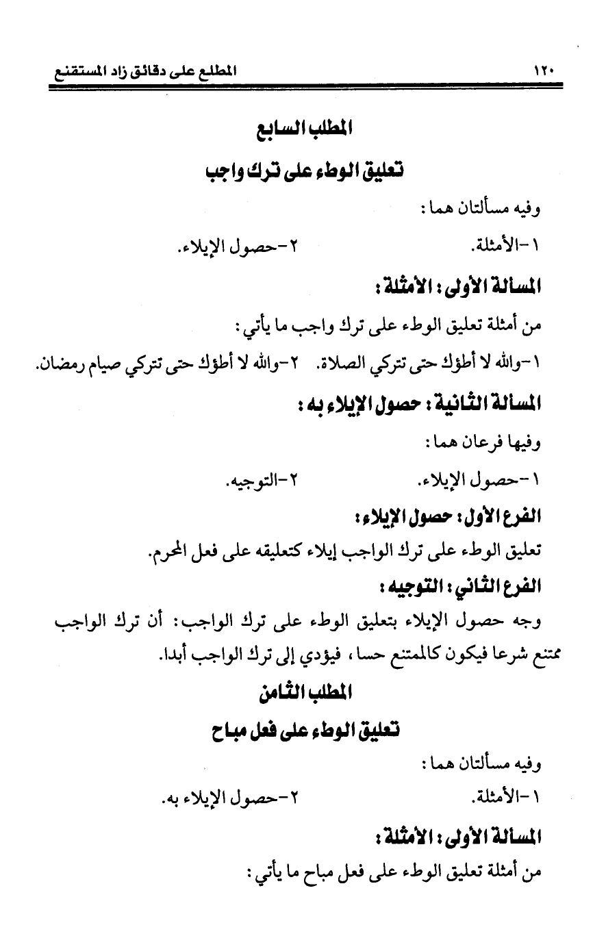 من أمثلة تعليق الوطء على ترك واجب ما يأتي: